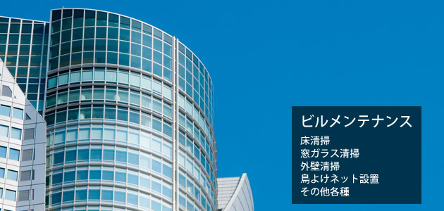ビルメンテナンスと一言で言いましても実際非常に多義にわたるものがありますが、当社ではクリーニングを主体とした仕事をしております。その中でも特に窓ガラス清掃等の高所作業を得意としています。月一回ほどの定期清掃ではロープによるブランコ作業で、安全で安上がりにできます。